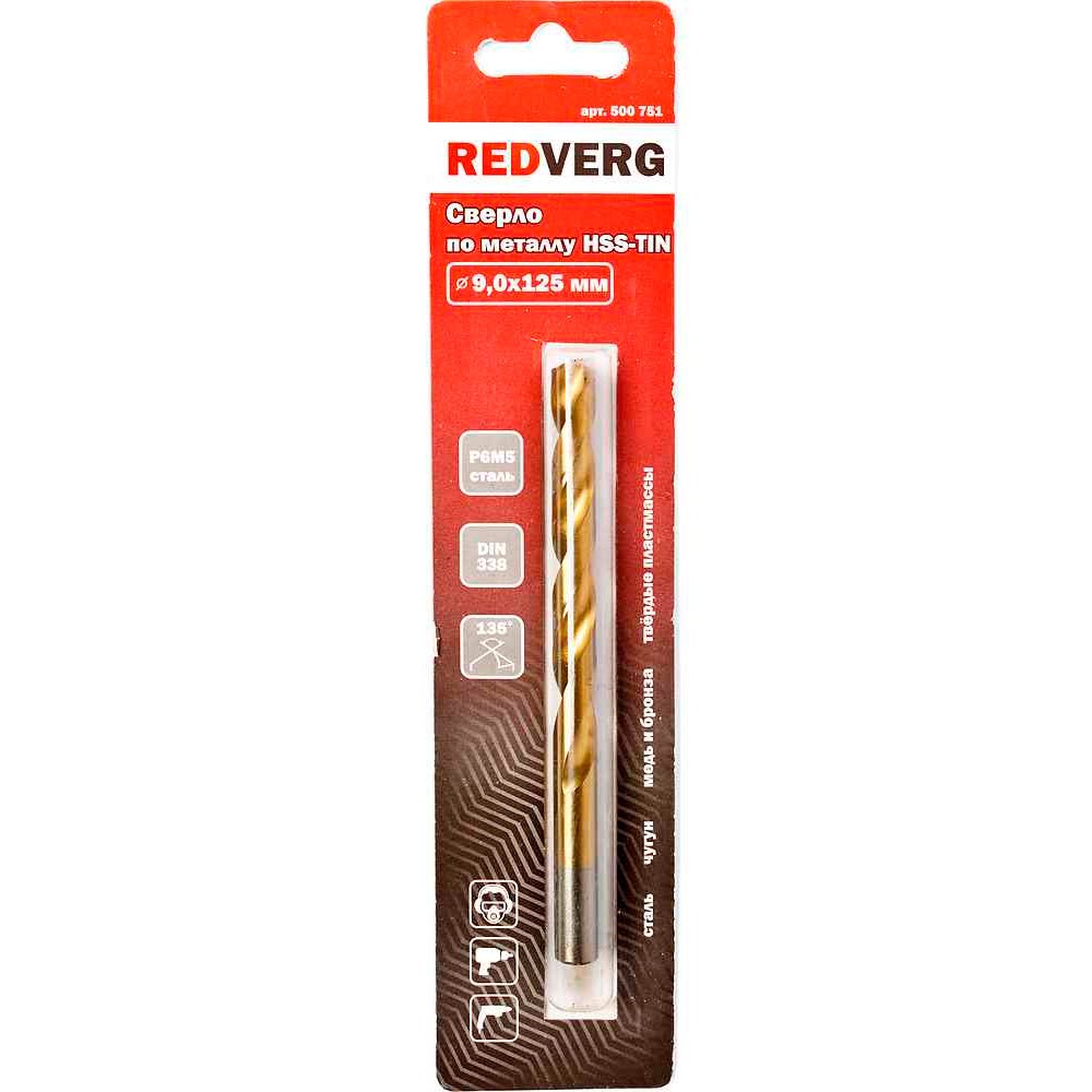 Сверло по металлу REDVERG HSS-TiN 9х125мм (500751)