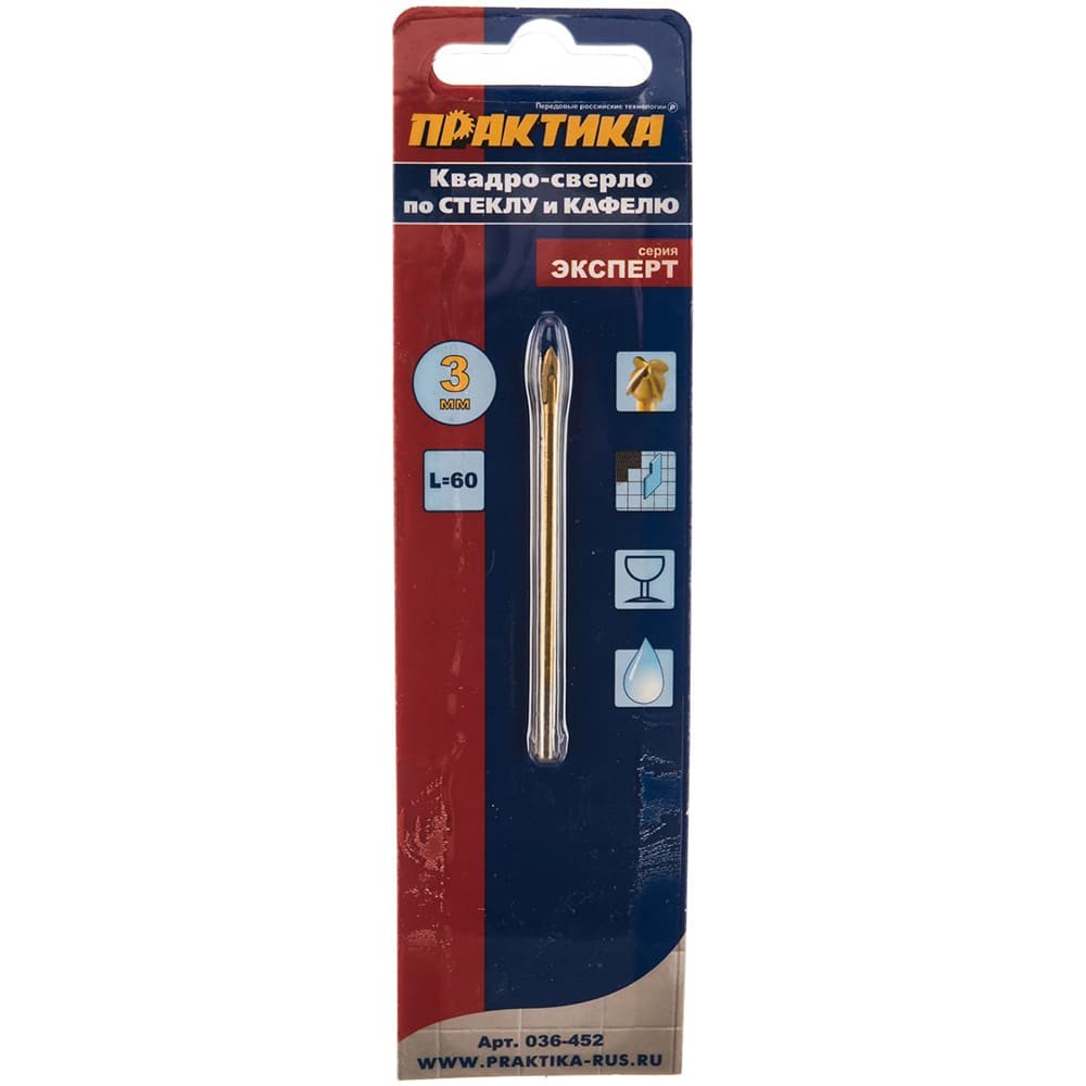 Сверло по стеклу Практика 3х60мм (036-452)