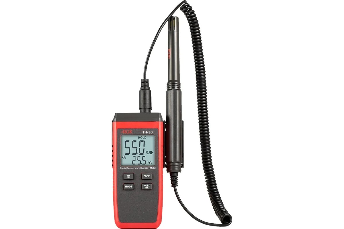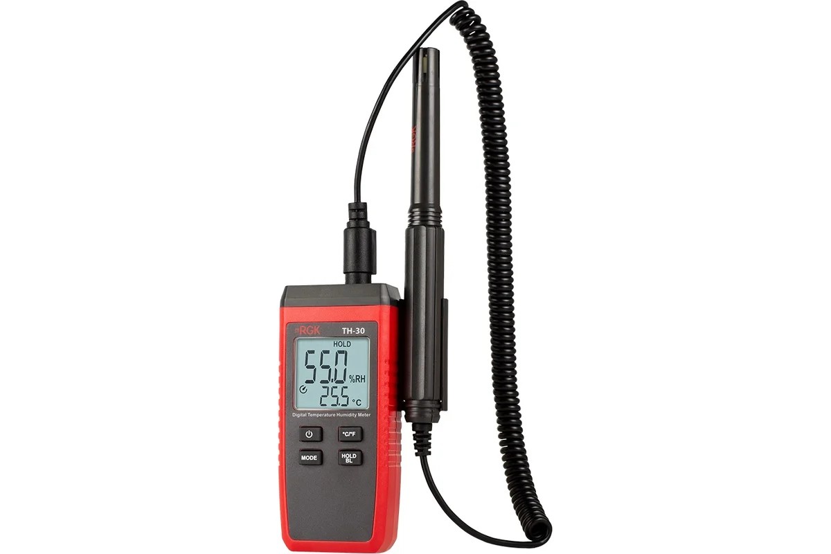 Термогигрометр RGK TH-12 с поверкой 779272 создан для измерения температуры в диапазоне от -10°С до + 50 °С и влажности в пределах от 20% до 90%. Используется для контроля режима хранения на складах и оценки условий труда на производстве или в офисе. Выносной датчик помогает мониторить климат в разных частях помещения или определять разницу между внутренней и наружней обстановкой. Прибор автоматически рассчитывает соотношение температуры и влажности, что позволяет оценить текущую ситуацию и принять меры. Для комфортного использования предусмотрен большой дисплей с крупными, четкими цифрами, отображение времени и функция будильника. Возможно два варианта установки изделия: на стену с помощью специальной петли на задней панели и на горизонтальные поверхности за счет откидной подставки. Сведения о термогигрометре внесены в Госреестр № 80307-20. *При покупке прибора с поверкой может возникнуть ситуация, когда данные о поверке в системе Аршин не отображаются сразу. Это связано с тем, что поверка производится незадолго до продажи, и данные передаются в Аршин. В соответствии с п. 21 приказа Минпромторга № 2510 от 31 июля 2020 г, на отображение данных в системе Аршин отводится до 40 рабочих дней с момента поверки прибора.
