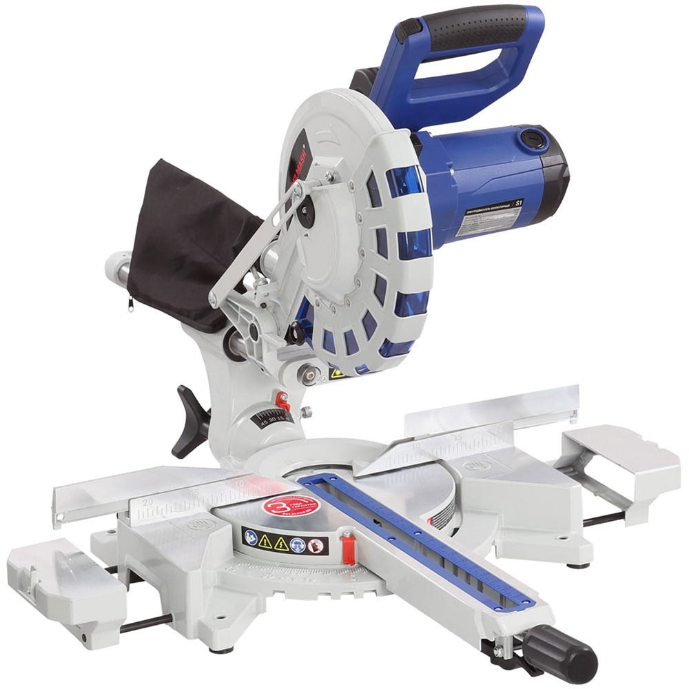 Поворотный рабочий стол из алюминиевого литья Регулируемый ограничитель глубины пропила Раздвижные расширители рабочего стола Механизм блокировки вала для облегчения замены пильного диска Регулировка наклона и поворота пильного диска Стопор основных углов поворота Прижим заготовки Лазерный указатель |