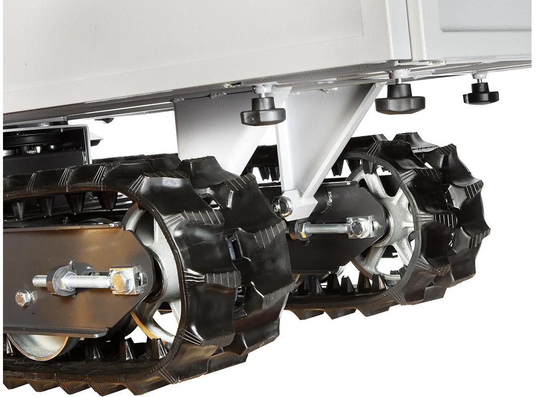 Надежный бензиновый двигатель Honda GX 160 OHV Гусеничная ходовая часть Независимое рулевое управление Радиус поворота 70 см Раздвижная платформа |