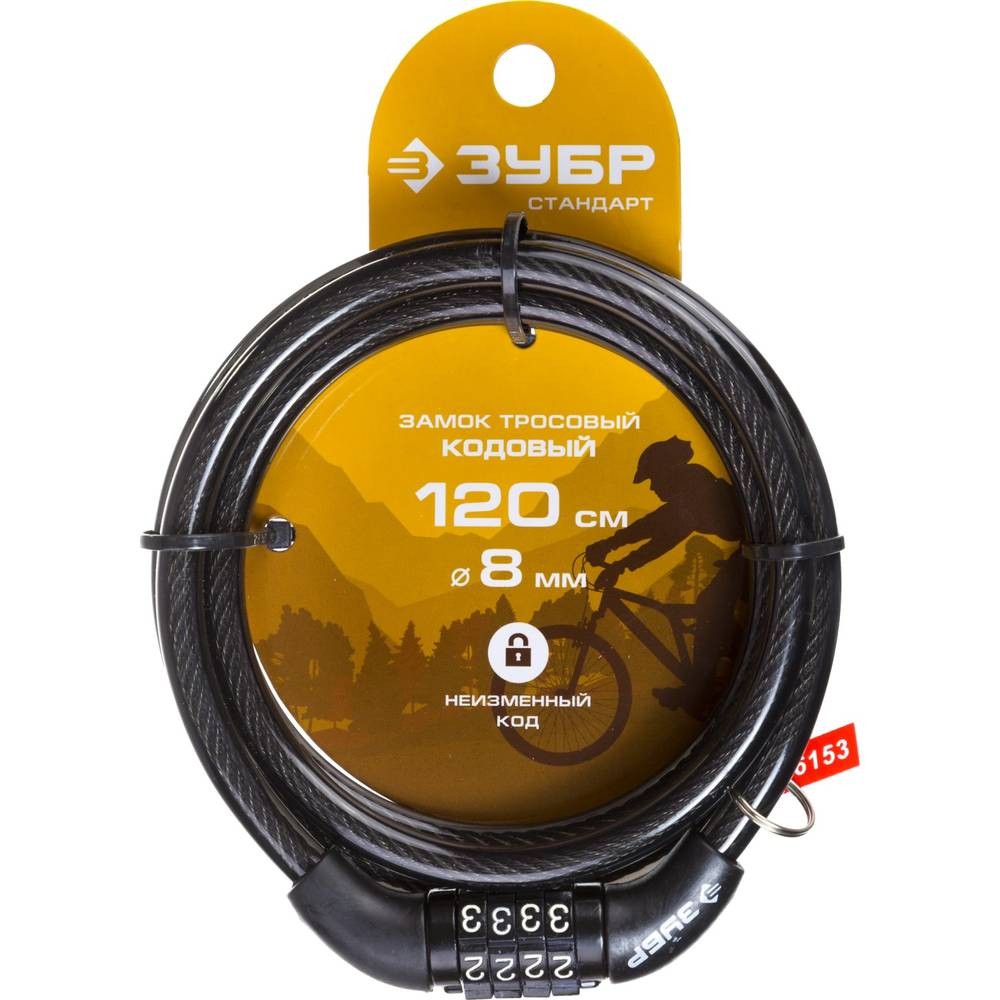 Тросовый замок ЗУБР 1200 мм, d 8 мм, кодовый, с неизменяемым кодом (37267-120)