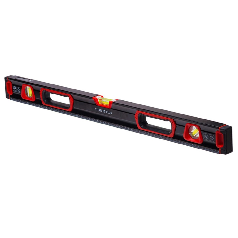 Уровень ADA TITAN 80 PLUS магнитный 800мм А00511 - отличный выбор для повседневной работы на стройплощадке. Профиль уровня имеет специальную форму с увеличенной толщиной на рабочих плоскостях, а также дополнительное ребро жесткости. Такая конструкция позволяет эффективно противостоять значительным нагрузкам на кручение, изгиб и на излом. Массивные торцевые заглушки из резины защищают от ударов с торца. Специальный вырез служит для подвешивания уровня при хранении. Мерная шкала на корпусе с обеих сторон позволяет использовать уровень в качестве линейки. Для работы на металических поверхностях (трубы, направляющие для ГКЛ) в рабочую поверхность встроены мощные магниты. Фрезерованная рабочая поверхность выполнена с высокой точностью и качеством, значительно повышает точность измерений.