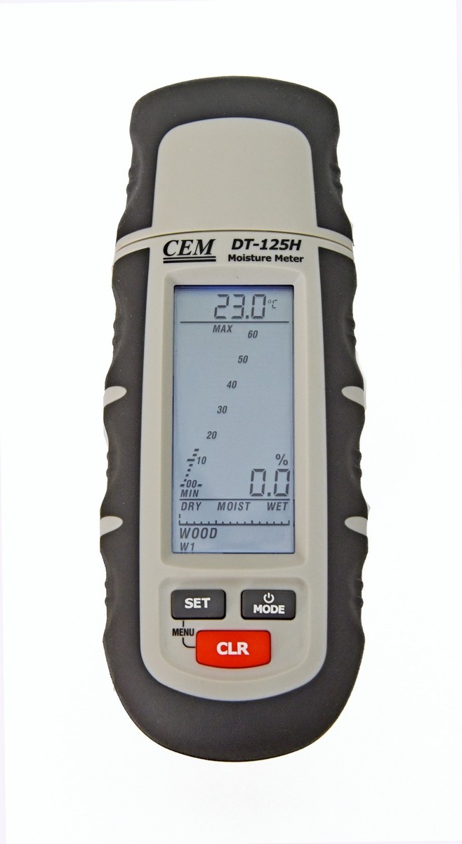Влагомер DT-125H — устройство, которое определяет процент влажности в древесине, строительных материалах. Помимо этого, измеряет параметры окружающей среды: температуру и влажность.
