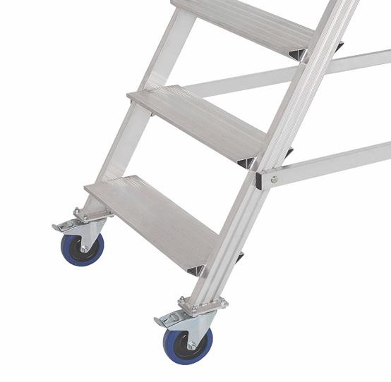 Легкий вес Простая и быстрая сборка без использования инструментов Широкие ступени из рифленого профиля Площадка размером 800х680мм Мобильность |