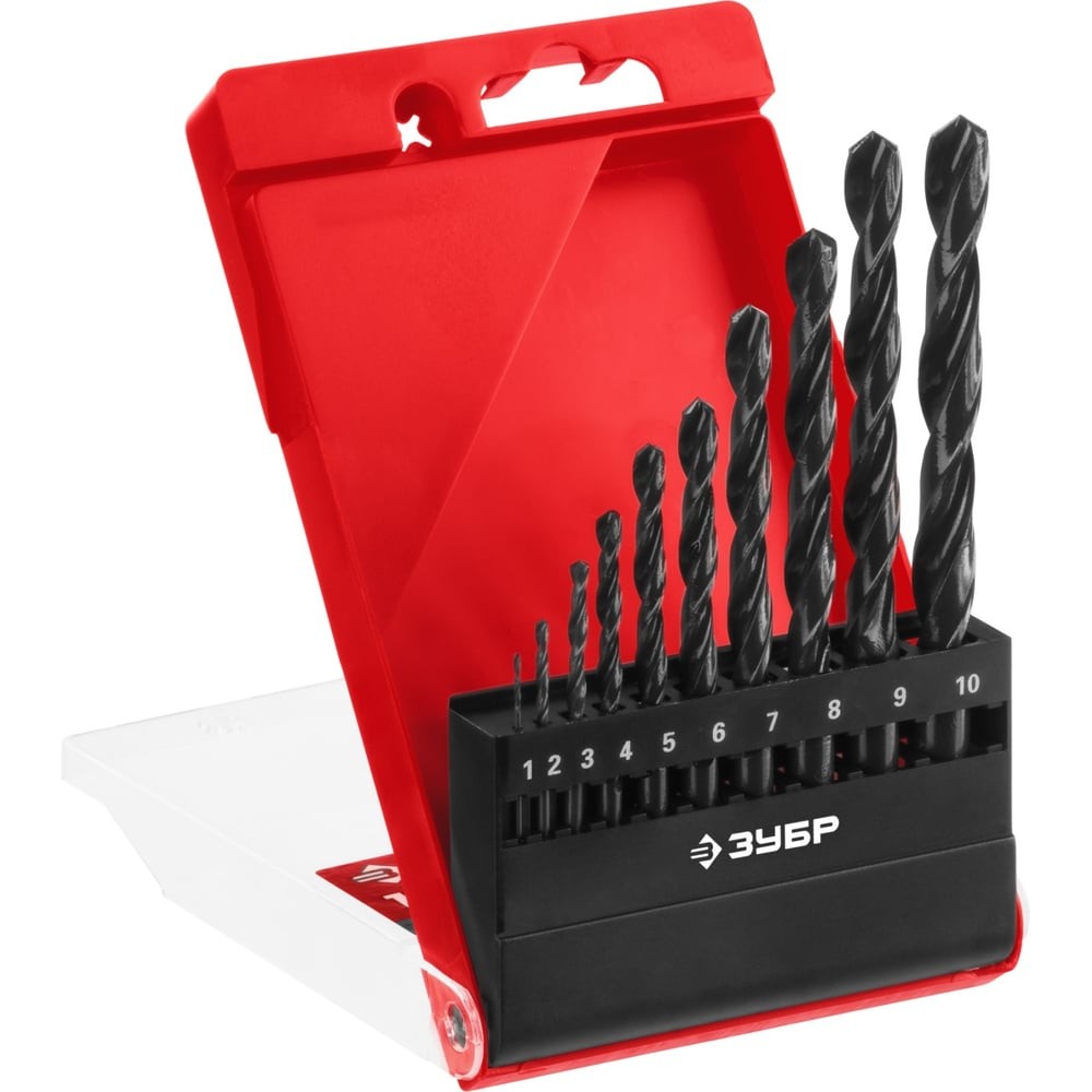 ЗУБР 10 шт, (1-10 мм), сталь Р4М2, класс В, набор сверл по металлу (29605-H10)
