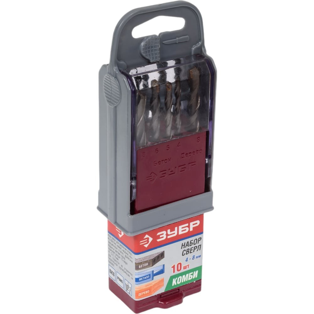 ЗУБР 10 шт, 4 - 8 мм, в супер боксе, набор комбинированных сверл (4-29704-H10-SB)