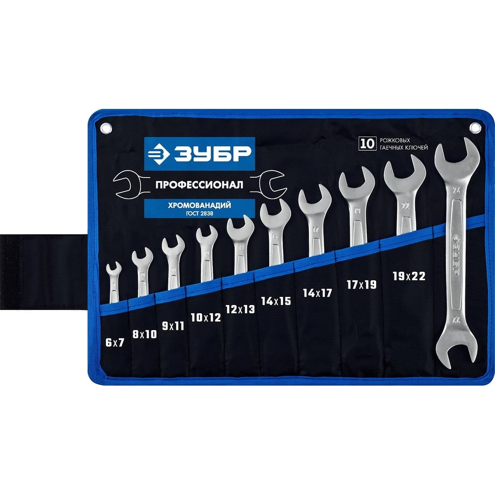 ЗУБР 10 шт, 6 - 24 мм, набор рожковых гаечных ключей, Профессионал (27010-H10)