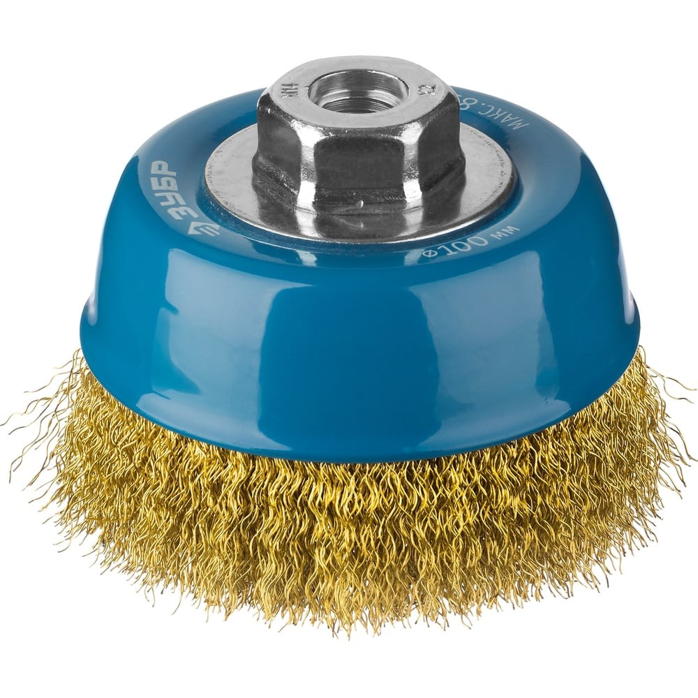 ЗУБР 100 мм, витая стальная латунированная проволока 0.3 мм, чашечная щетка-крацовка для УШМ, Профессионал (3526-100)