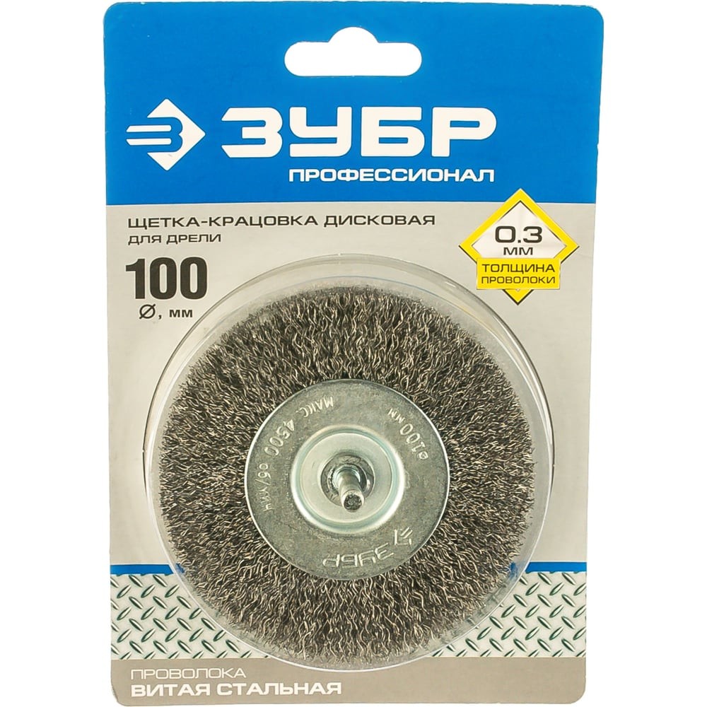 ЗУБР 100 мм, витая, стальная проволока 0.3 мм, щетка дисковая для дрели, Профессионал (35198-100)