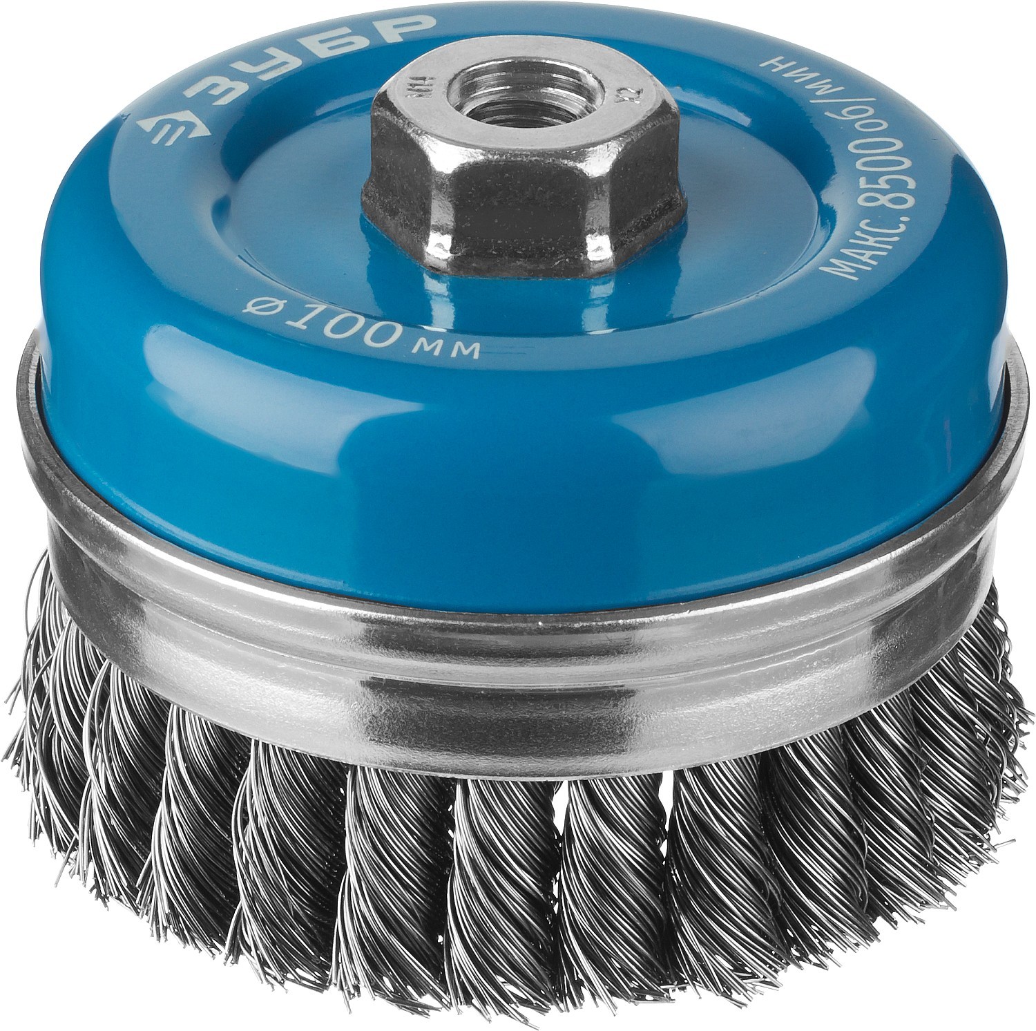 ЗУБР 100 мм, жгутированная стальная проволока 0.5 мм, усиленная чашечная щетка-крацовка для УШМ, Профессионал (3527-100)