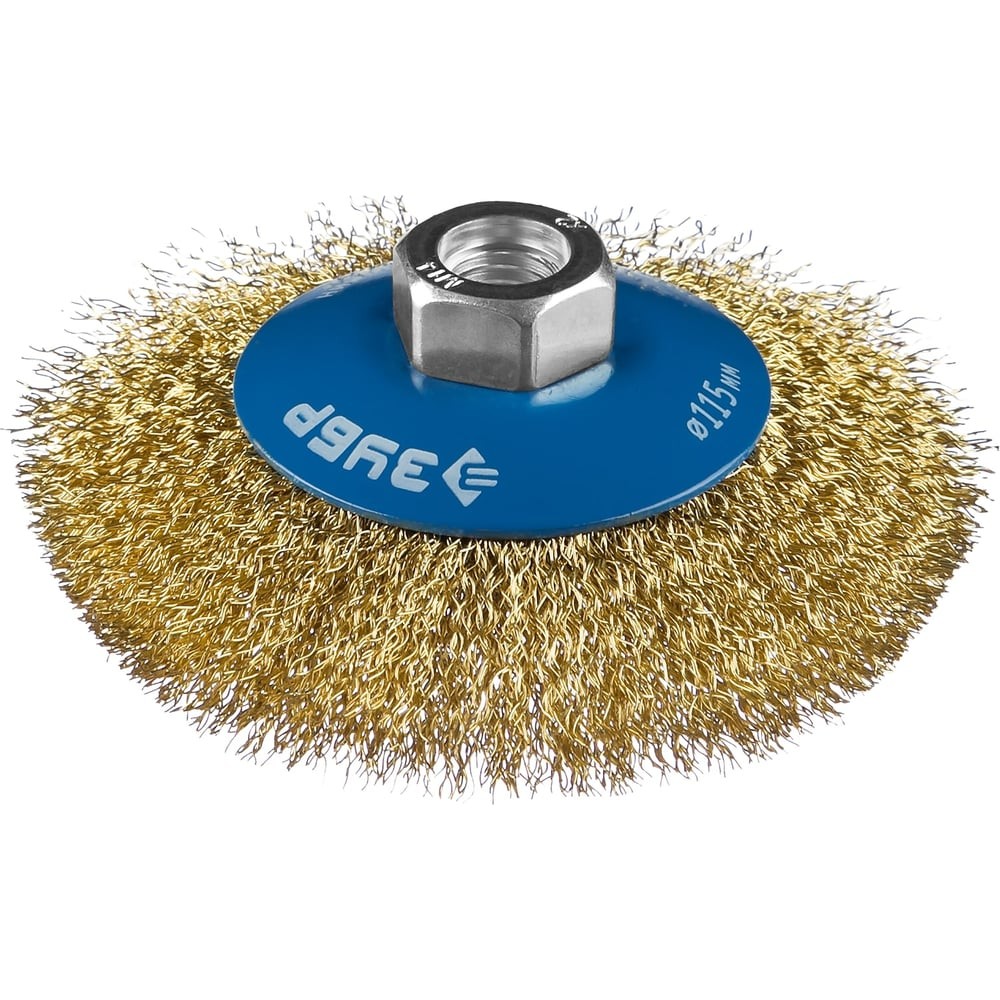 ЗУБР 115 мм, витая стальная латунированная проволока 0.3 мм, коническая щетка-крацовка для УШМ, Профессионал (35267-115)