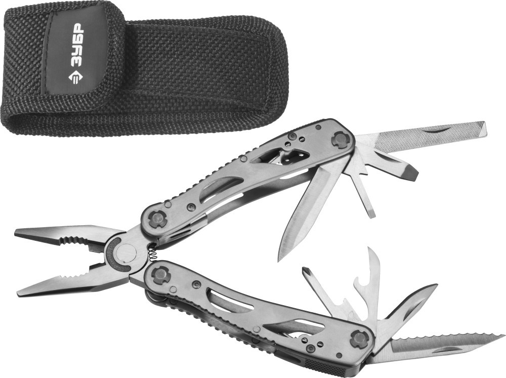 ЗУБР 12 в 1, облегченная рукоятка 105 мм, мультитул, многофункциональный инструмент (47752)