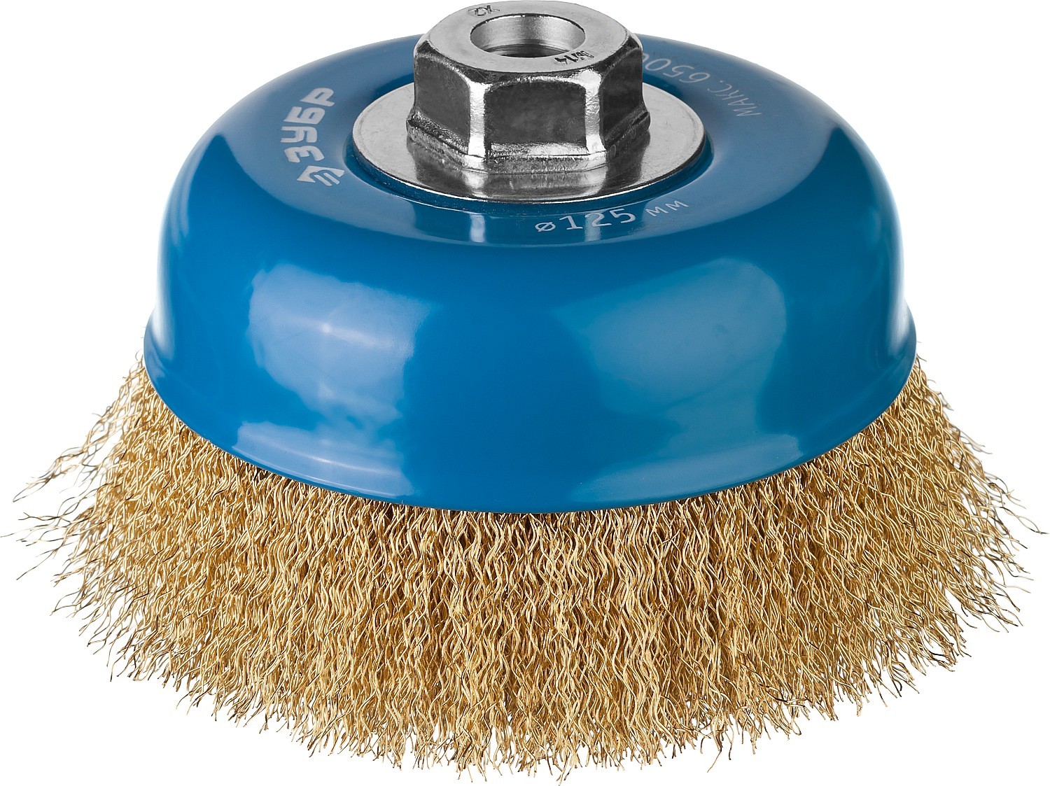 ЗУБР 125 мм, витая стальная латунированная проволока 0.3 мм, чашечная щетка-крацовка для УШМ, Профессионал (3526-125)