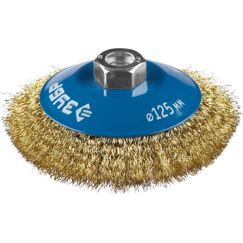 ЗУБР 125 мм, витая стальная латунированная проволока 0.3 мм, коническая щетка-крацовка для УШМ, Профессионал (35267-125)