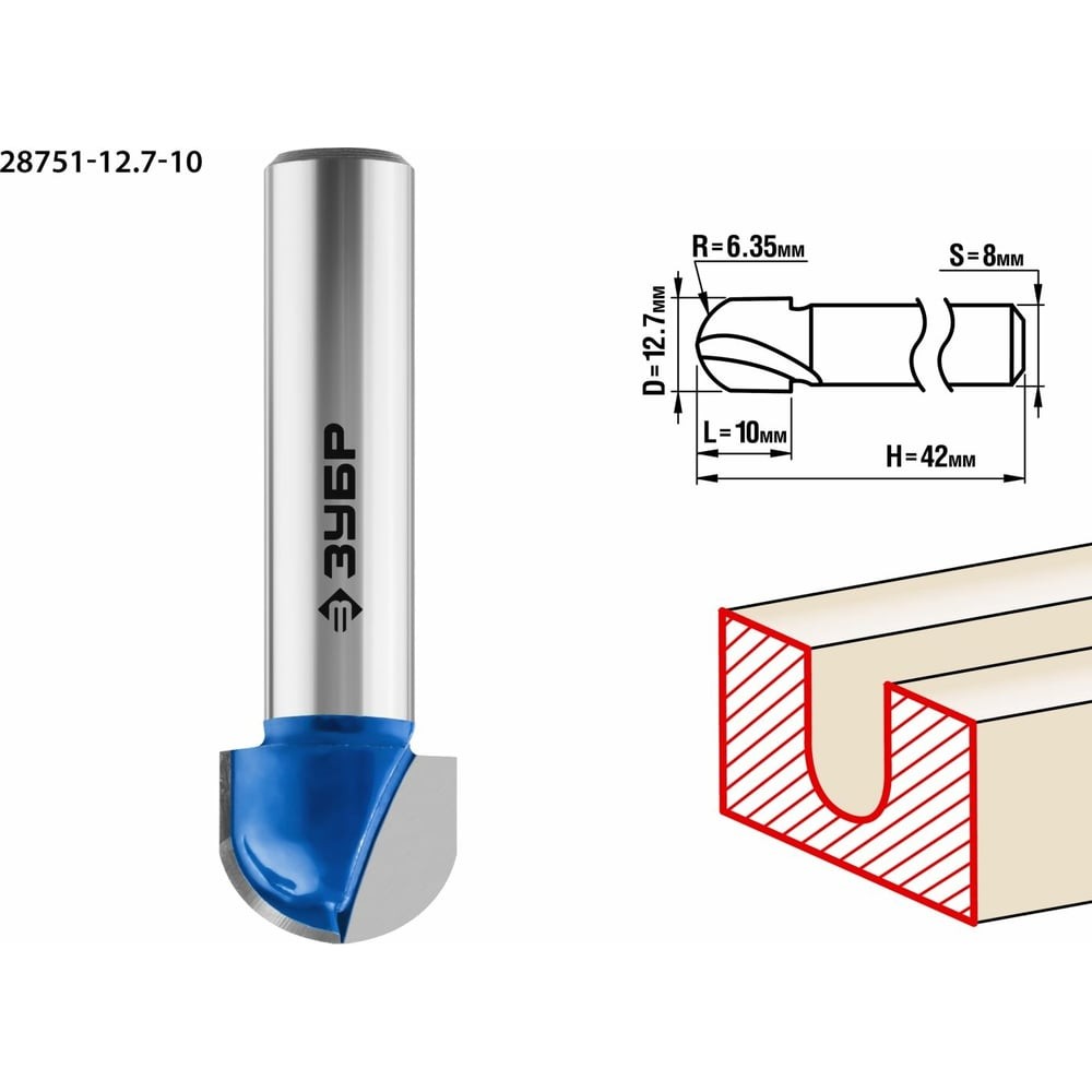 ЗУБР 12.7 x 10 мм, радиус 6.35 мм, фреза пазовая галтельная, Профессионал (28751-12.7-10)
