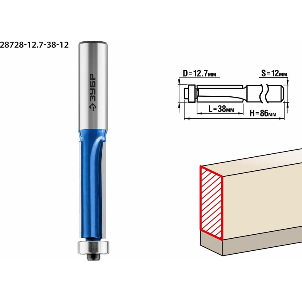 ЗУБР 12.7 x 38 мм, хвостовик 12 мм, фреза кромочная с нижним подшипником (3 лезвия), Профессионал (28728-12.7-38-12)