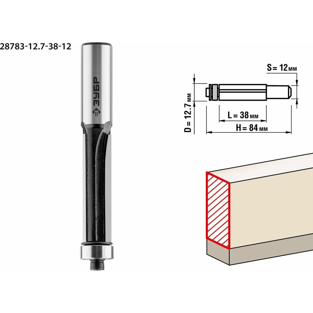 ЗУБР 12.7 x 38 мм, хвостовик 12 мм, фреза кромочная с нижним подшипником, Профессионал (28783-12.7-38-12)