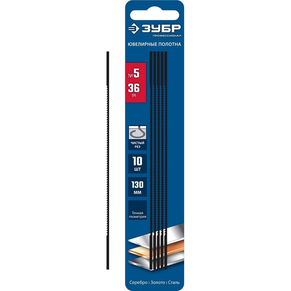 ЗУБР 130 мм, 36 TPI, 10 шт, полотна ювелирные для лобзика, Профессионал (1533-10)