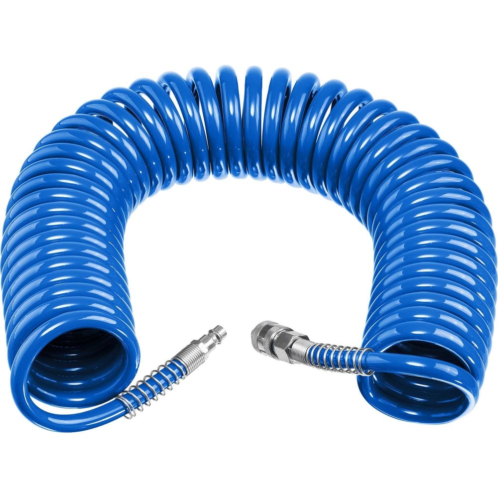 ЗУБР 15 м, 6 х 8 мм, 15 бар, воздушный спиральный шланг с фитингами рапид, Профессионал (6473-15)