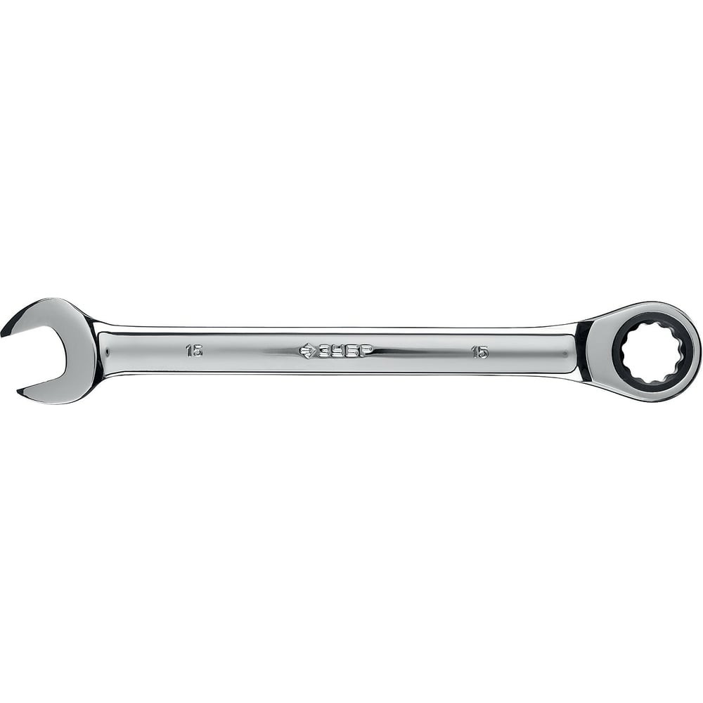 ЗУБР 15 мм, комбинированный трещоточный гаечный ключ, Профессионал (27074-15)