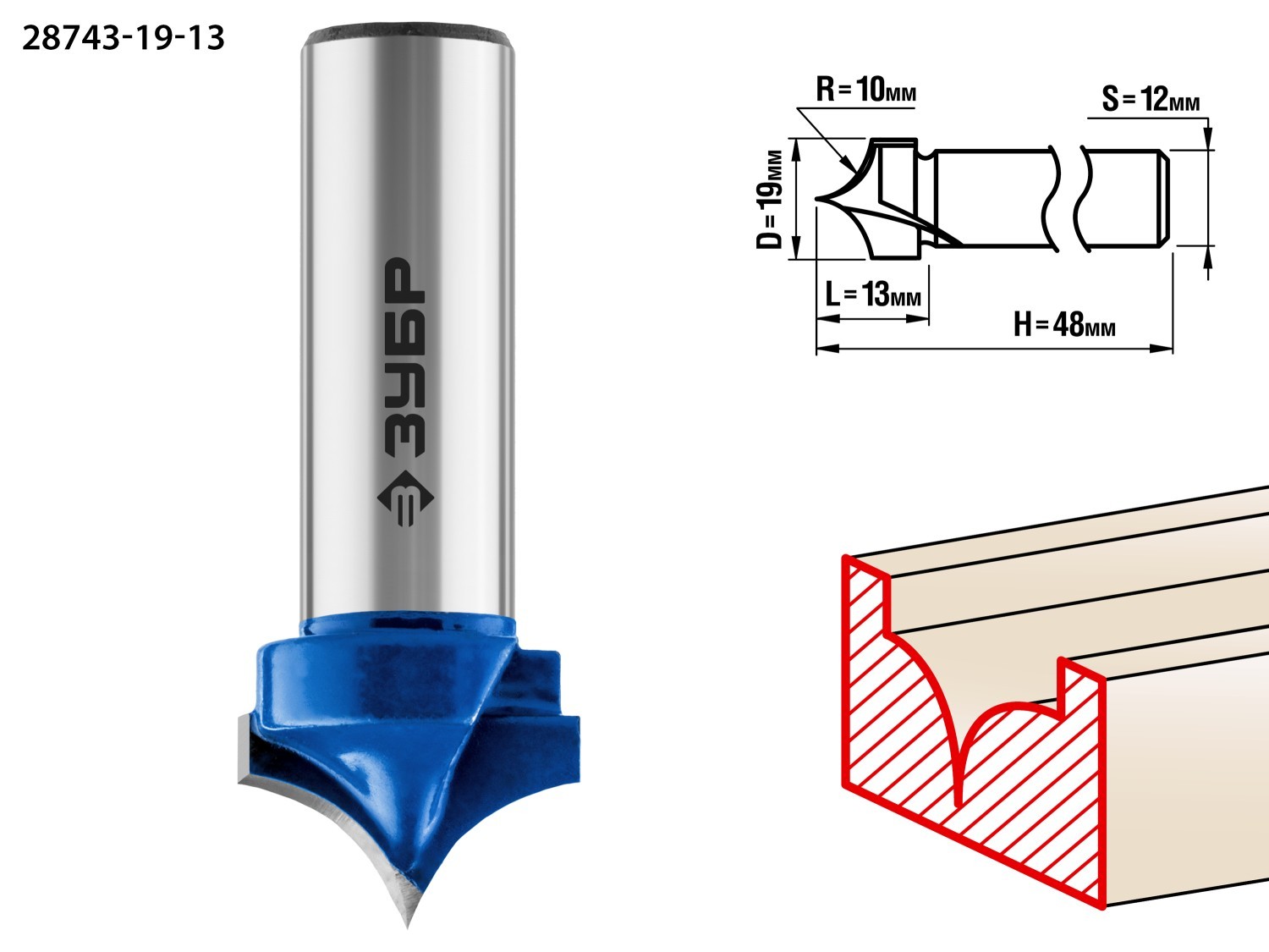 ЗУБР 19 x 13 мм, радиус 10 мм, фреза пазовая фасонная №4, Профессионал (28743-19-13)