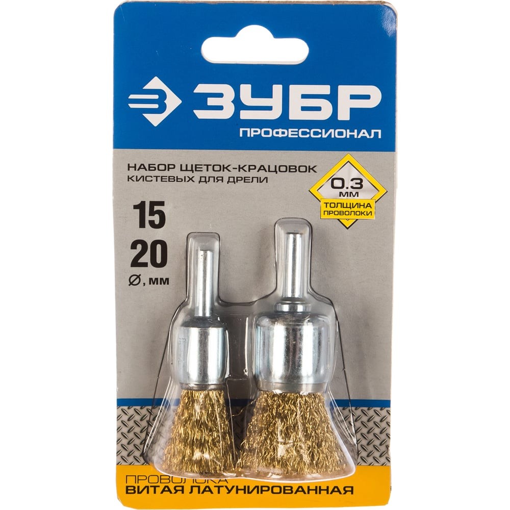 ЗУБР 2 шт, 17, 24 мм, витая стальная латунированная проволока 0.3 мм, набор кистевых щеток-крацовок для УШМ, Профессионал (3532-H2)