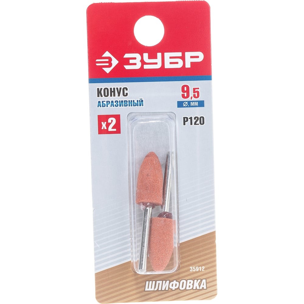 ЗУБР 2 шт, 9.5 x 19.0 х 3.2 мм, L 45 мм, P 120, набор абразивных шлифовальных конусов (35912)
