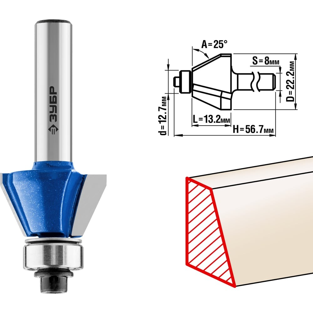 ЗУБР 22.2 x 13 мм, фреза кромочная калевочная (фасочная) №9, Профессионал (28711-22.2)