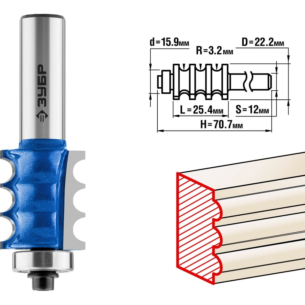 ЗУБР 22.2 x 26 мм, радиус 3 мм, фреза кромочная фигурная №1, Профессионал (28712-22.2)