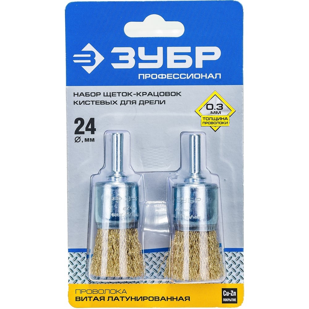 ЗУБР 24 мм, витая стальная латунированная проволока 0.3 мм, набор кистевых щеток для дрели, Профессионал (35225-24-H2)