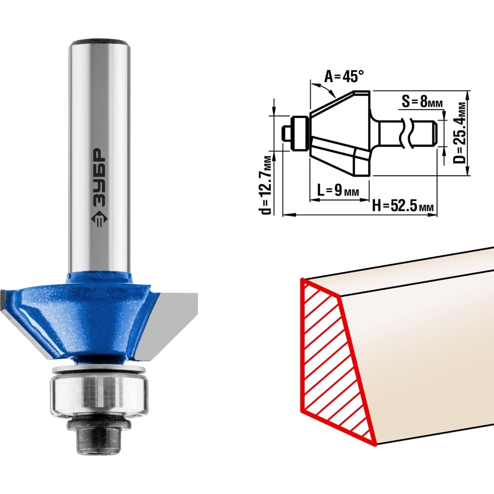 ЗУБР 25.4 x 8 мм, фреза кромочная калевочная (фасочная) №9, Профессионал (28711-25.4)