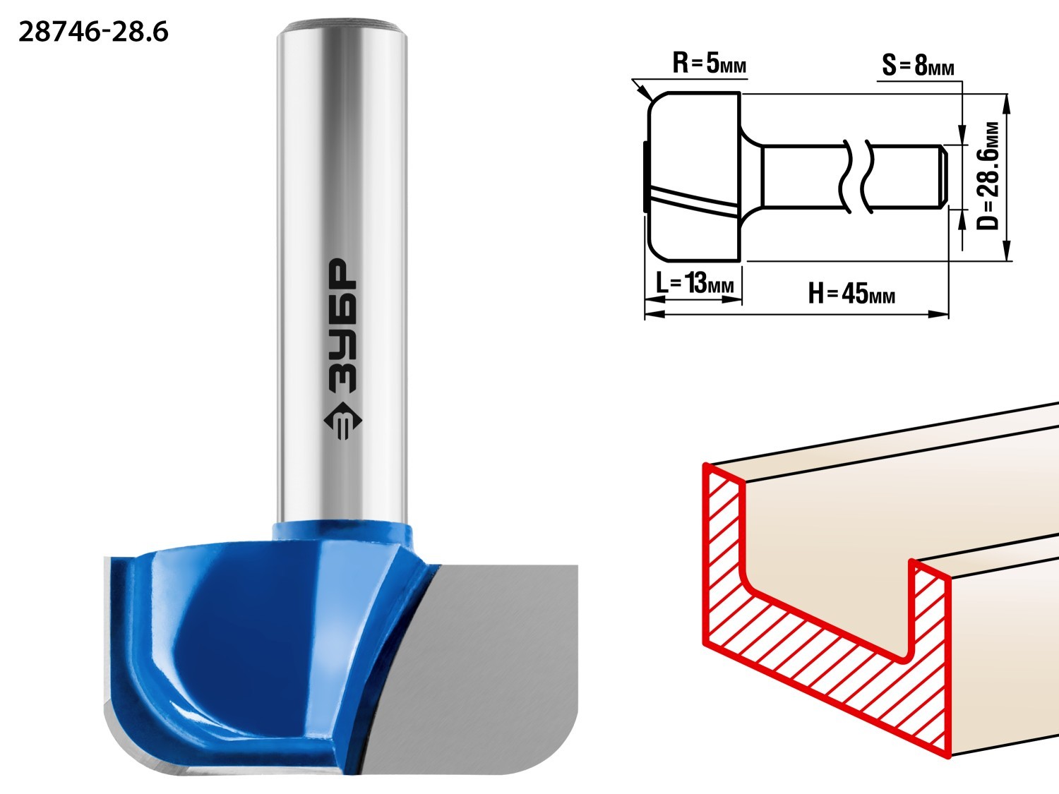 ЗУБР 28.6 x 13 мм, радиус 5 мм, фреза пазовая фасонная №7, Профессионал (28746-28.6)