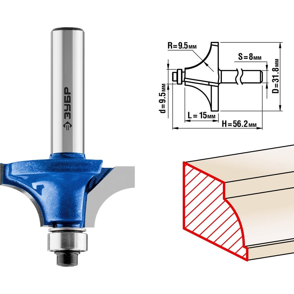 ЗУБР 31.8 x 15 мм, радиус 9.5 мм, фреза кромочная калевочная №1, Профессионал (28700-31.8)