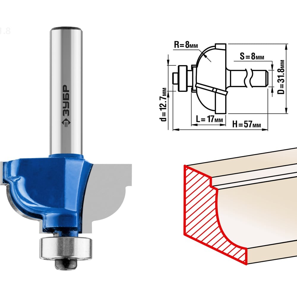 ЗУБР 31.8 x 17 мм, радиус 8 мм, фреза кромочная калевочная №7, Профессионал (28708-31.8)