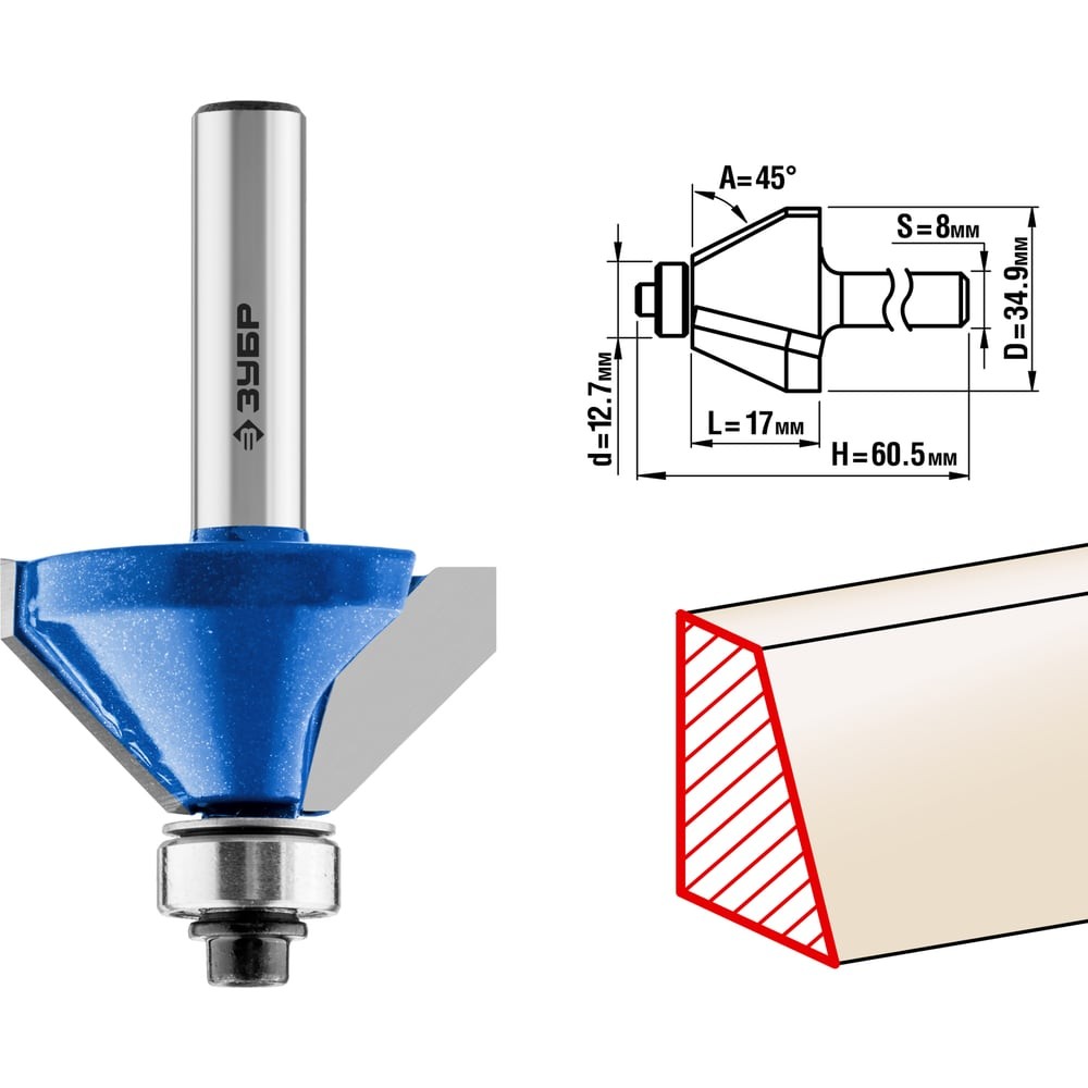 ЗУБР 34.9 x 16 мм, фреза кромочная калевочная (фасочная) №9, Профессионал (28711-34.9)