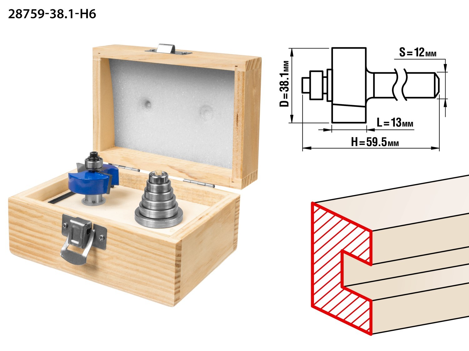ЗУБР 38.1 x 13 мм, хвостовик 12 мм, фреза четвертная фальцевая с подшипниками, Профессионал (28759-38.1-H6)