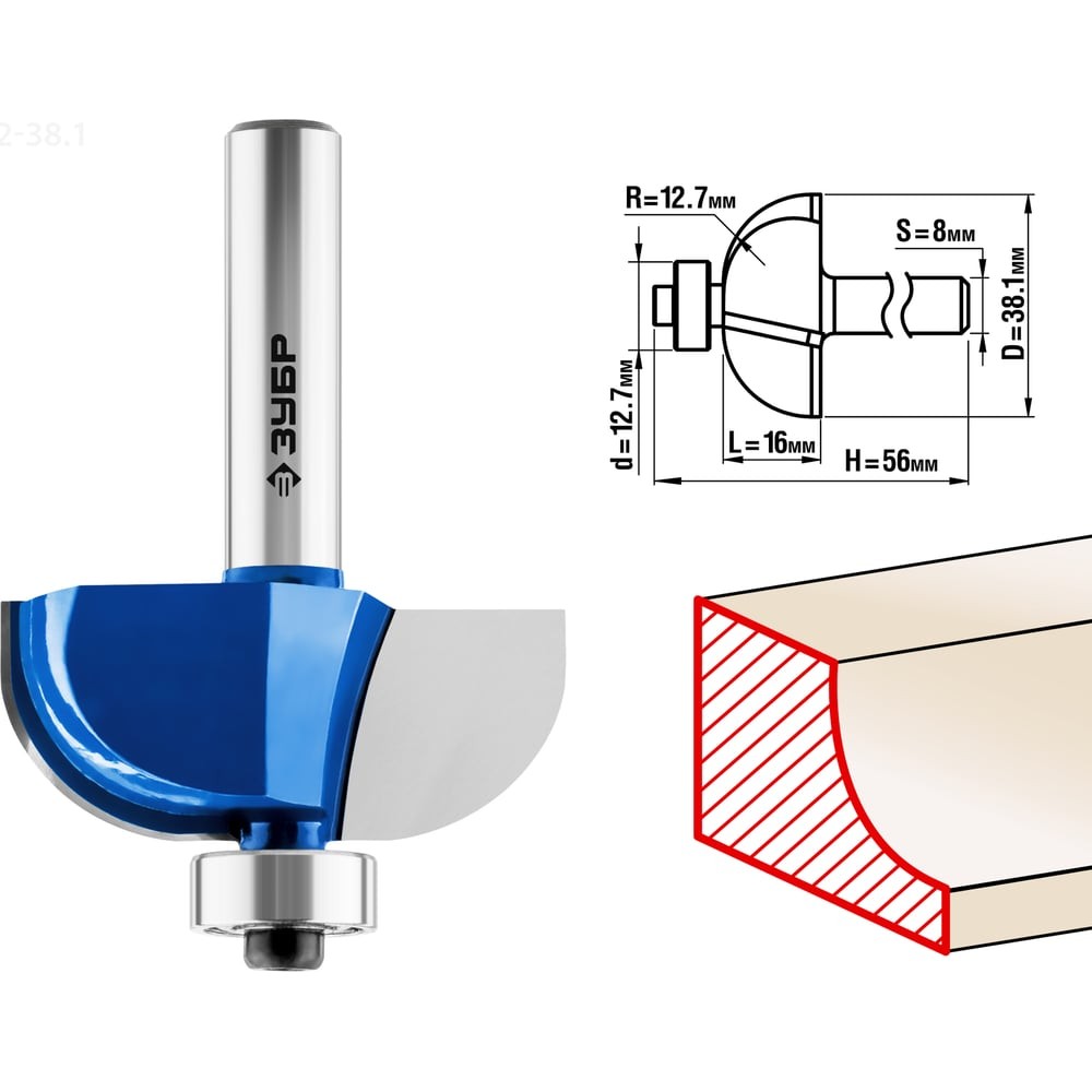 ЗУБР 38.1 x 16 мм, радиус 12.7 мм, фреза кромочная калевочная №2, Профессионал (28702-38.1)