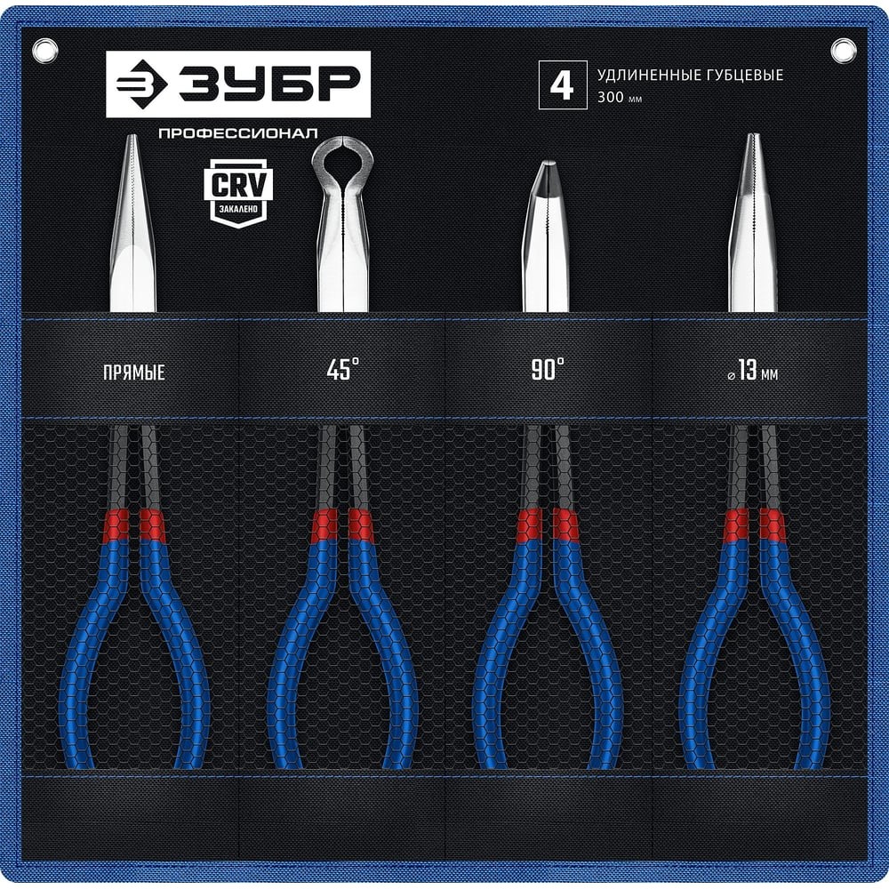 ЗУБР 4 шт, набор удлиненного губцевого инструмента, Профессионал (22026)