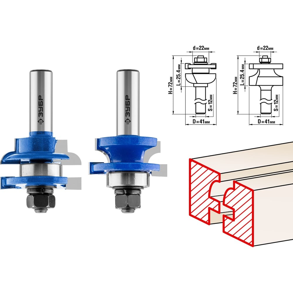 ЗУБР 41 x 23 мм, хвостовик 12 мм, набор фрез рамочных №3, Профессионал (28773-41.3-H2)
