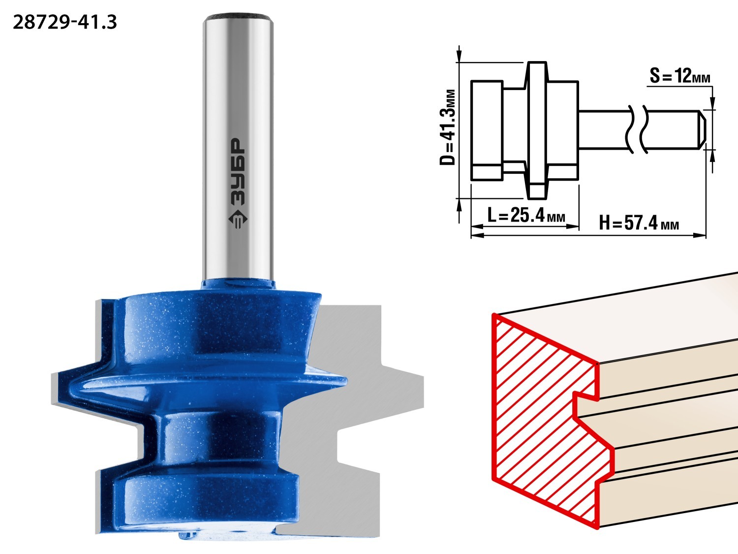 ЗУБР 41.3 x 29 мм, хвостовик 12 мм, фреза комбинированная универсальная, Профессионал (28729-41.3)