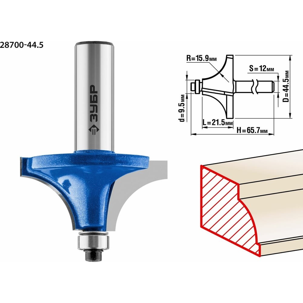 ЗУБР 44.5 x 21.5 мм, радиус 15.9 мм, фреза кромочная калевочная №1, Профессионал (28700-44.5)