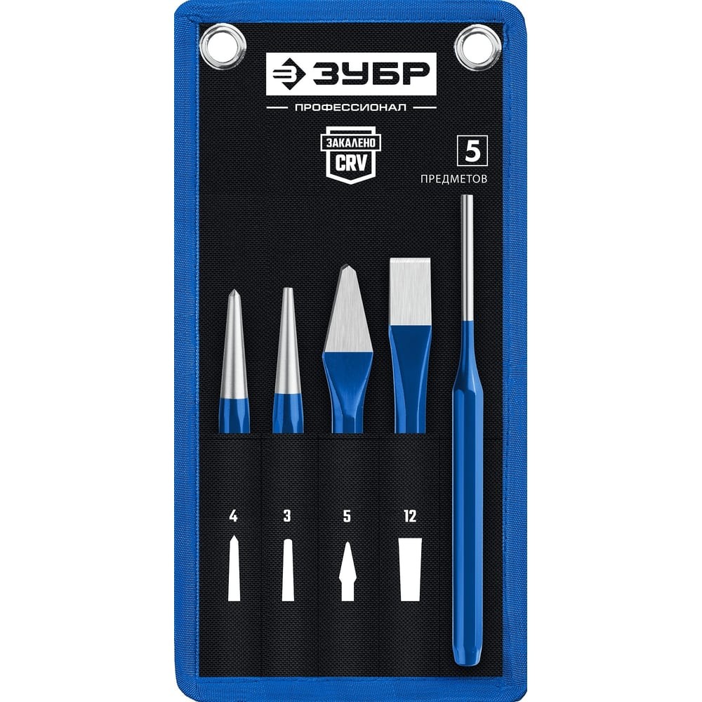 ЗУБР 5 предметов, набор шестигранных зубил и кернеров в чехле, Профессионал (21070-H5)