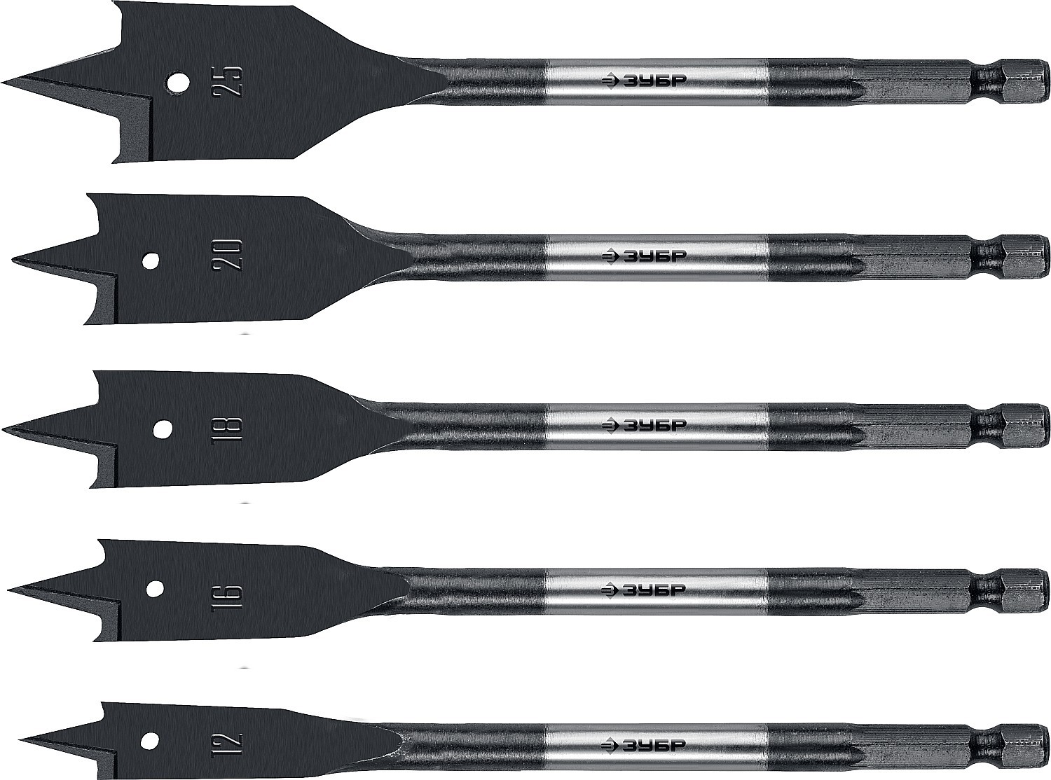 ЗУБР 5 шт, 12-16-18-20-25 мм, хвостовик HEX 1/4_, набор перовых сверл по дереву (29505-H5)