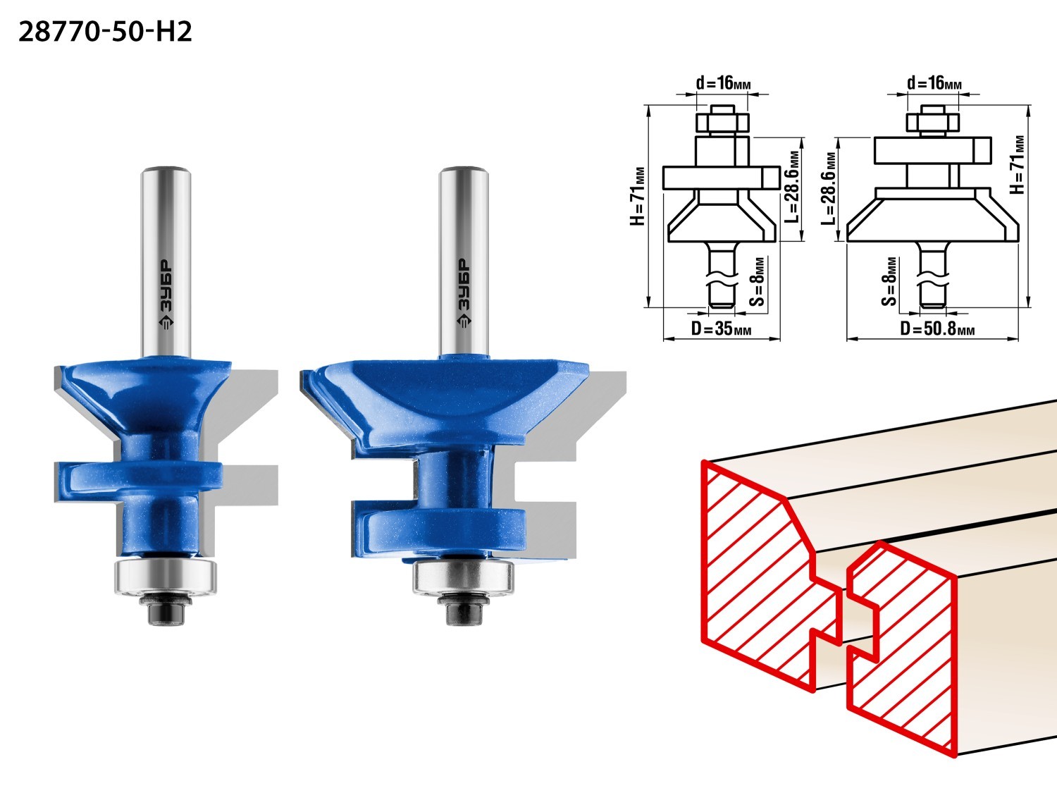 ЗУБР 50 x 30 мм, хвостовик 8 мм, набор фрез для вагонки, Профессионал (28770-50-H2)