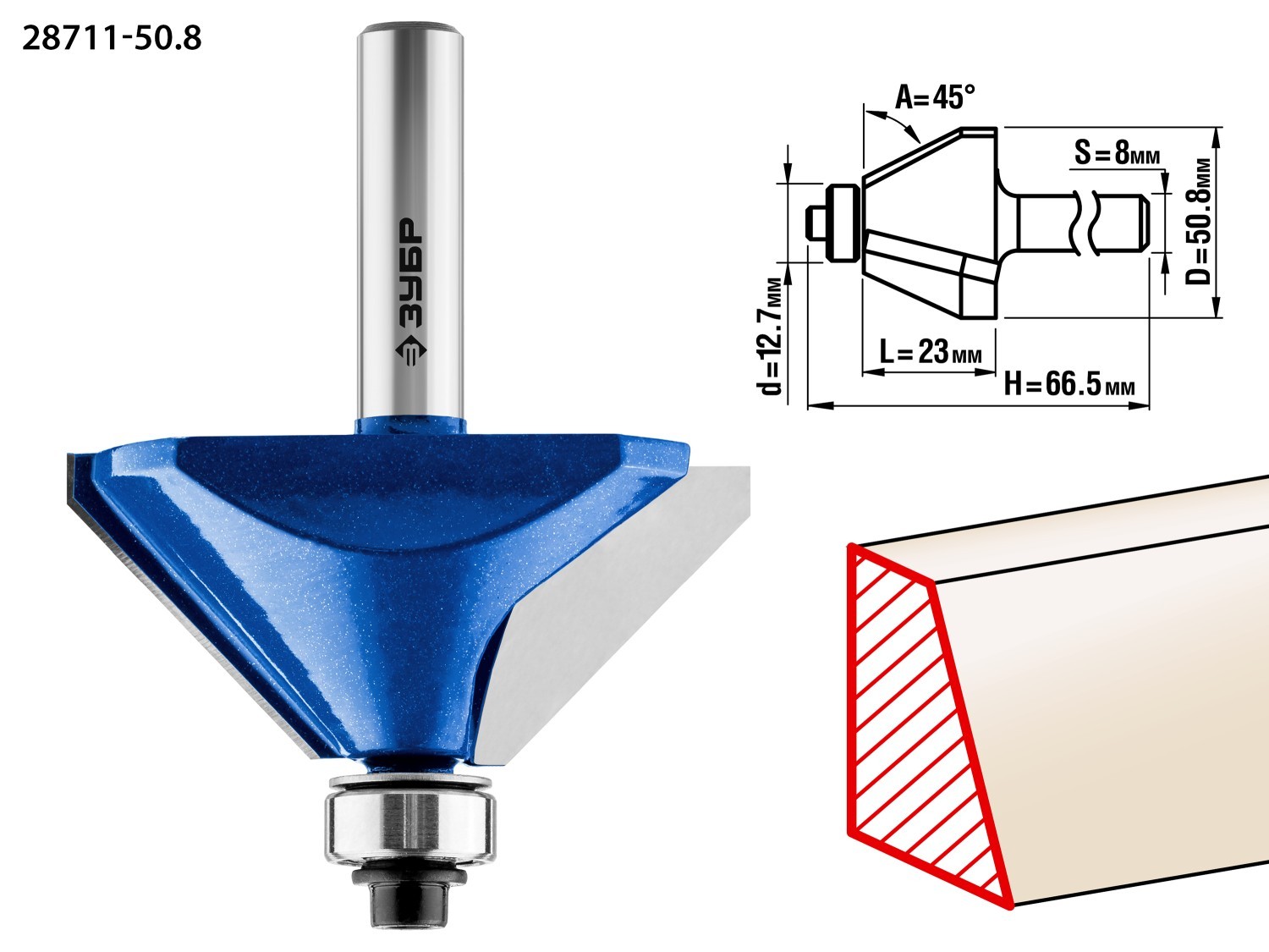 ЗУБР 50.8 x 27 мм, фреза кромочная калевочная (фасочная) №9, Профессионал (28711-50.8)