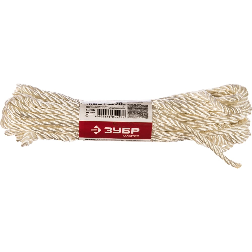 ЗУБР 6 мм, 20 м, 375 кгс, 12.5 ктекс, капроновая веревка (50206)