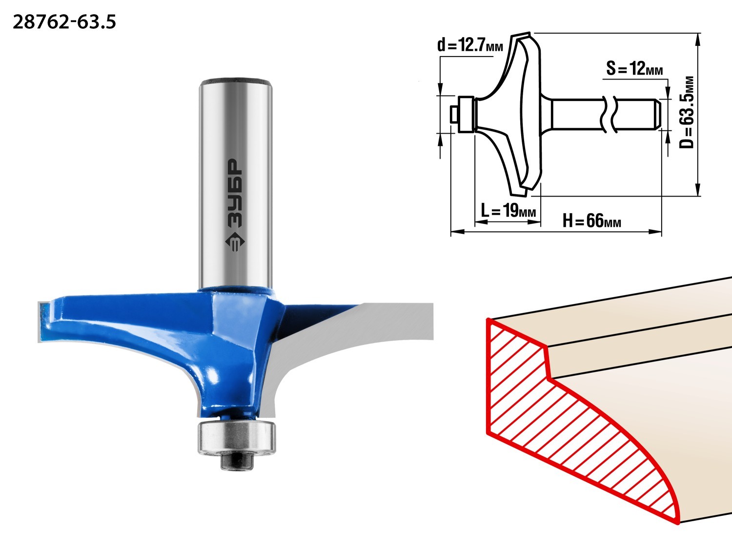 ЗУБР 63.5 x 19 мм, радиус 0 мм, фреза фигирейная №3, Профессионал (28762-63.5)