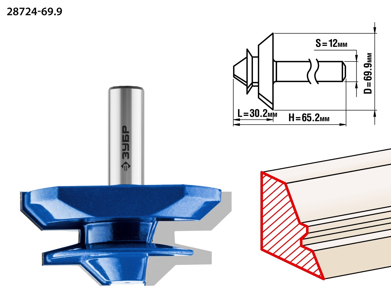 ЗУБР 69.9 x 30 мм, фреза кромочная для углового сращивания, Профессионал (28724-69.9)