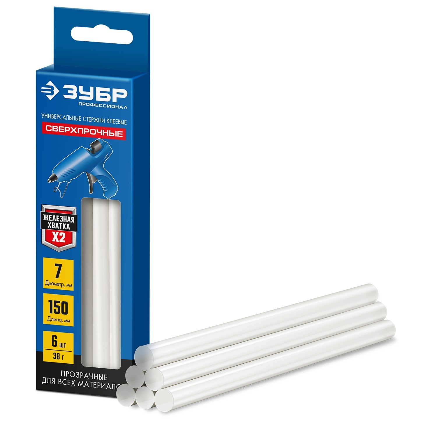 ЗУБР 7 х 150 мм, 6 шт, сверхпрочные прозрачные клеевые стержни, Профессионал (06855-6)